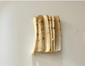 - ごぼうを回転させながら、ピーラーを軽く当てながら薄く削るように切る。