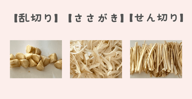 ごぼうの食感を活かす切り方は、大きく分けて以下の3種類に分けられます。