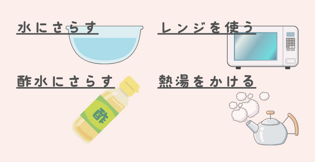 正しいごぼうのアク抜き方法は、大きく分けて以下の4種類に分けられます。